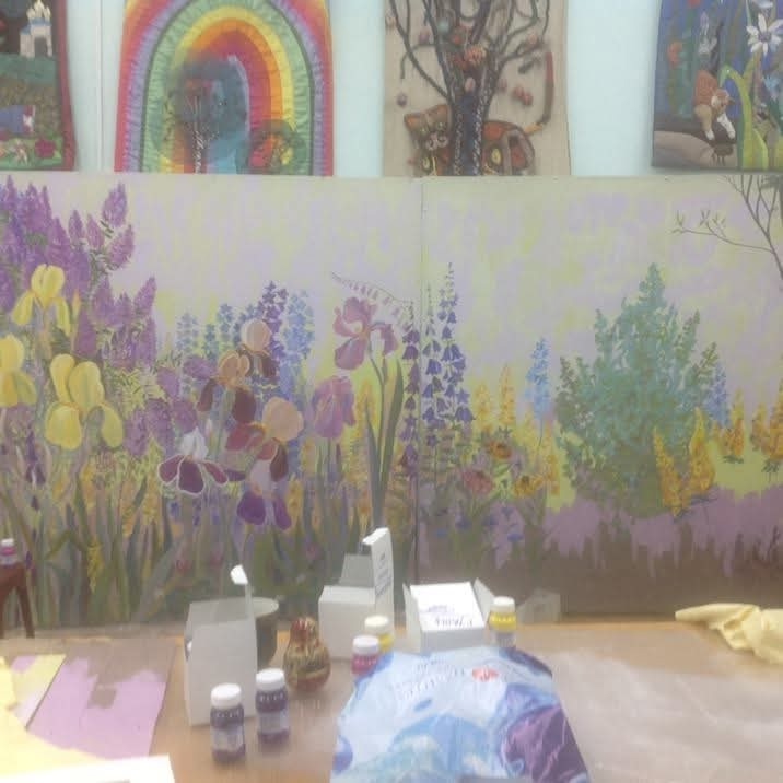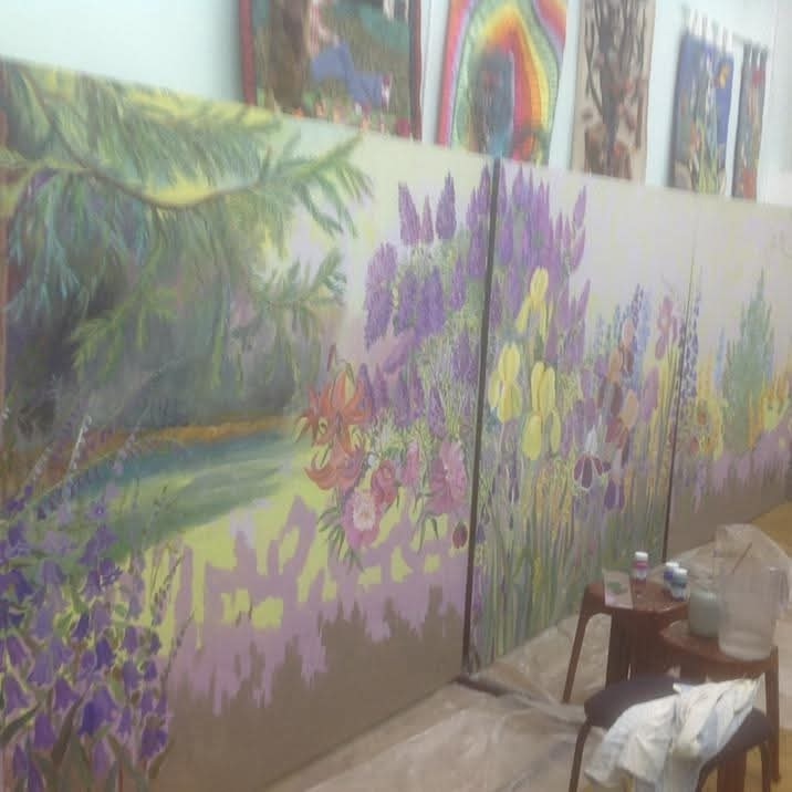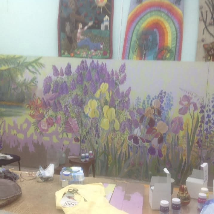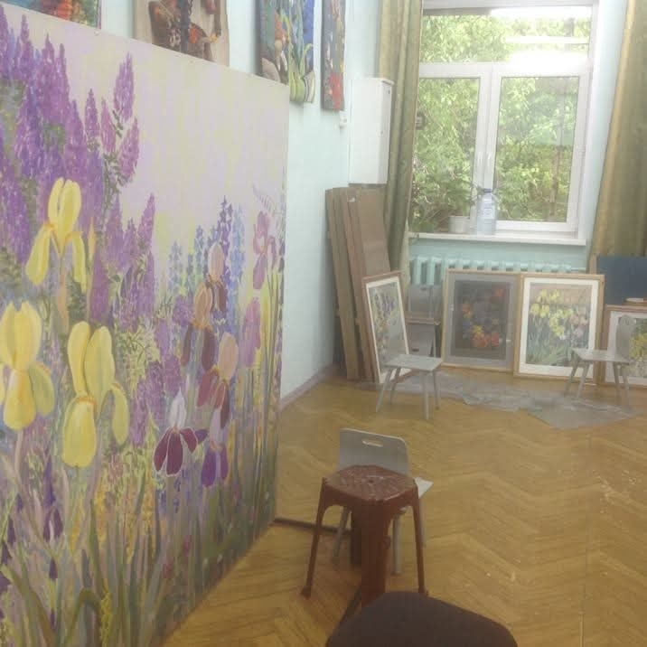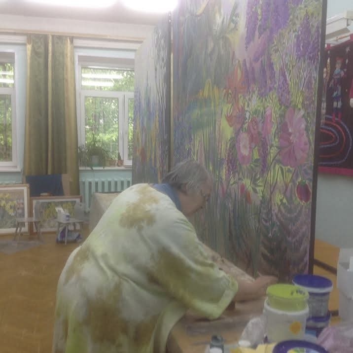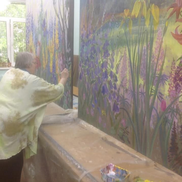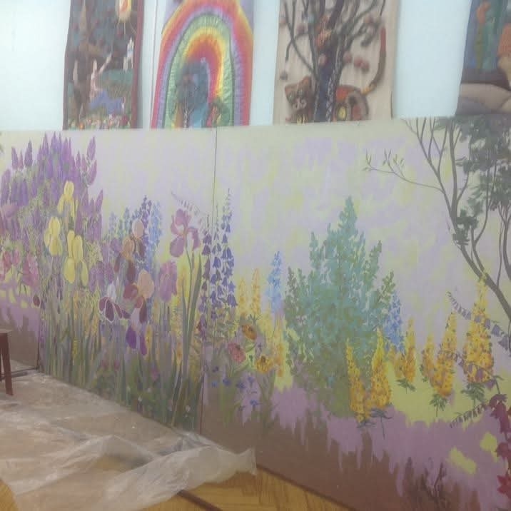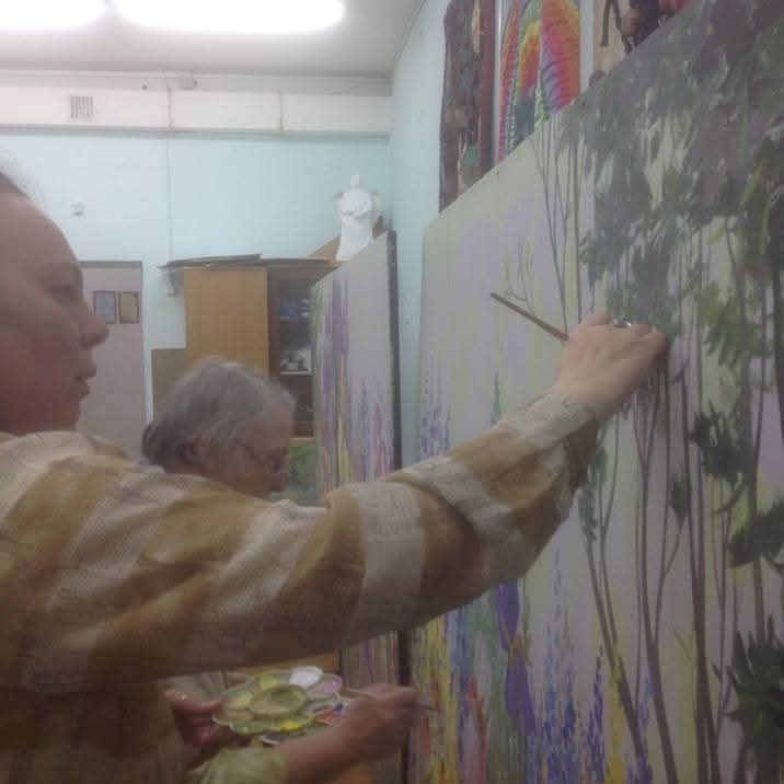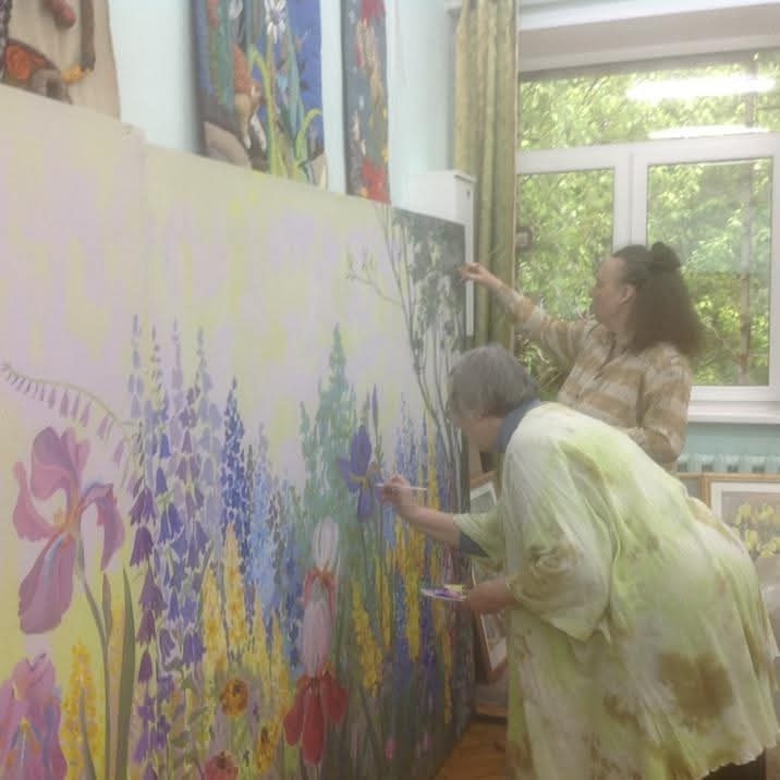 Художники Творческой мастерской бренда NESNOVA™ за работой: руководитель Медиагруппы АртМосковия Ольга Неснова и Людмила Неснова за работой над цветочным пано. Его размер составил 1,5 х 12 м. Судьба пано в настоящее время не известна.